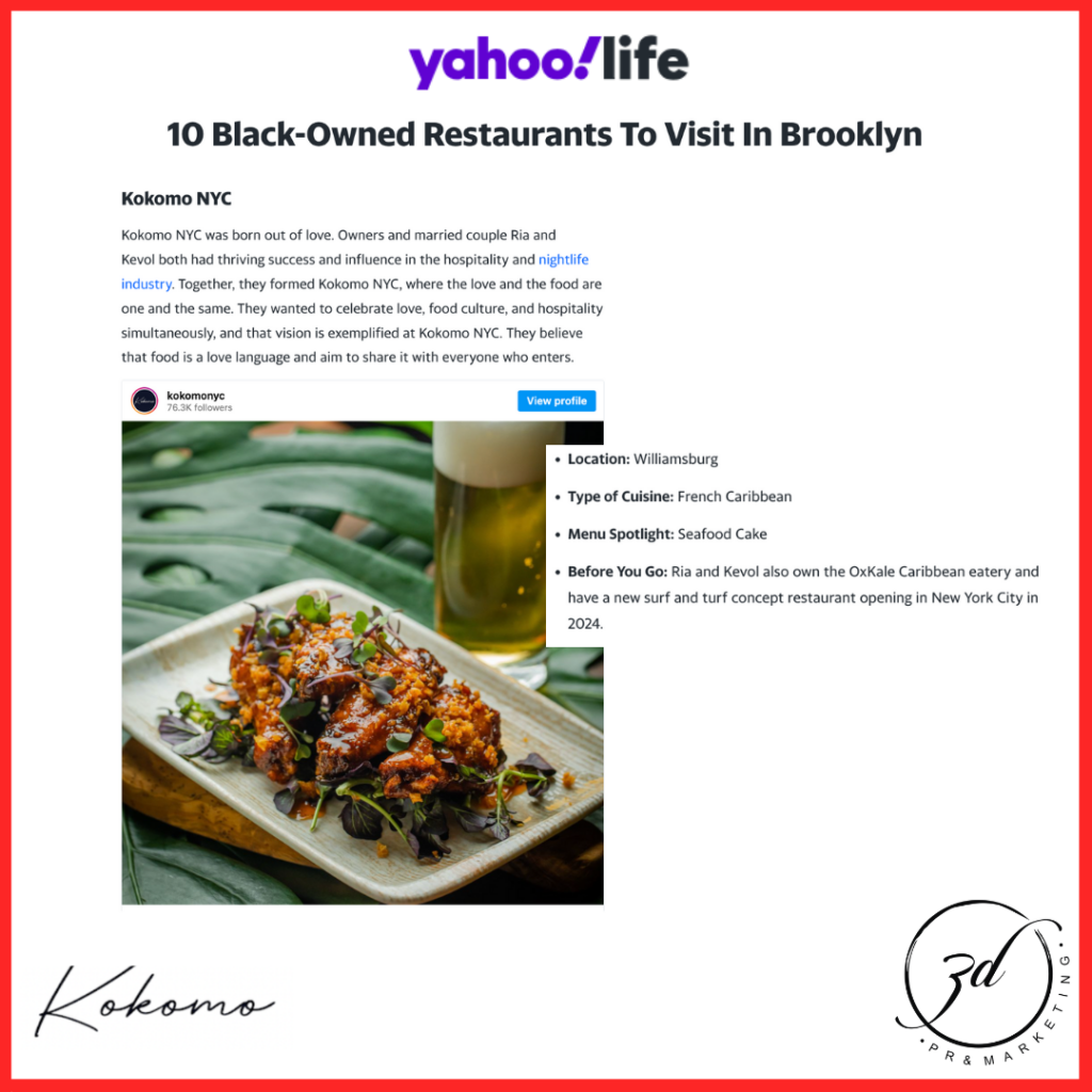 Kokomo restaurant, located in Williamsburg, Brooklyn, entrepreneurs and New York City natives Ria Grahame and Kevol Graham (partners in both life and business). Kokomo will definitely transport you to the Caribbean …